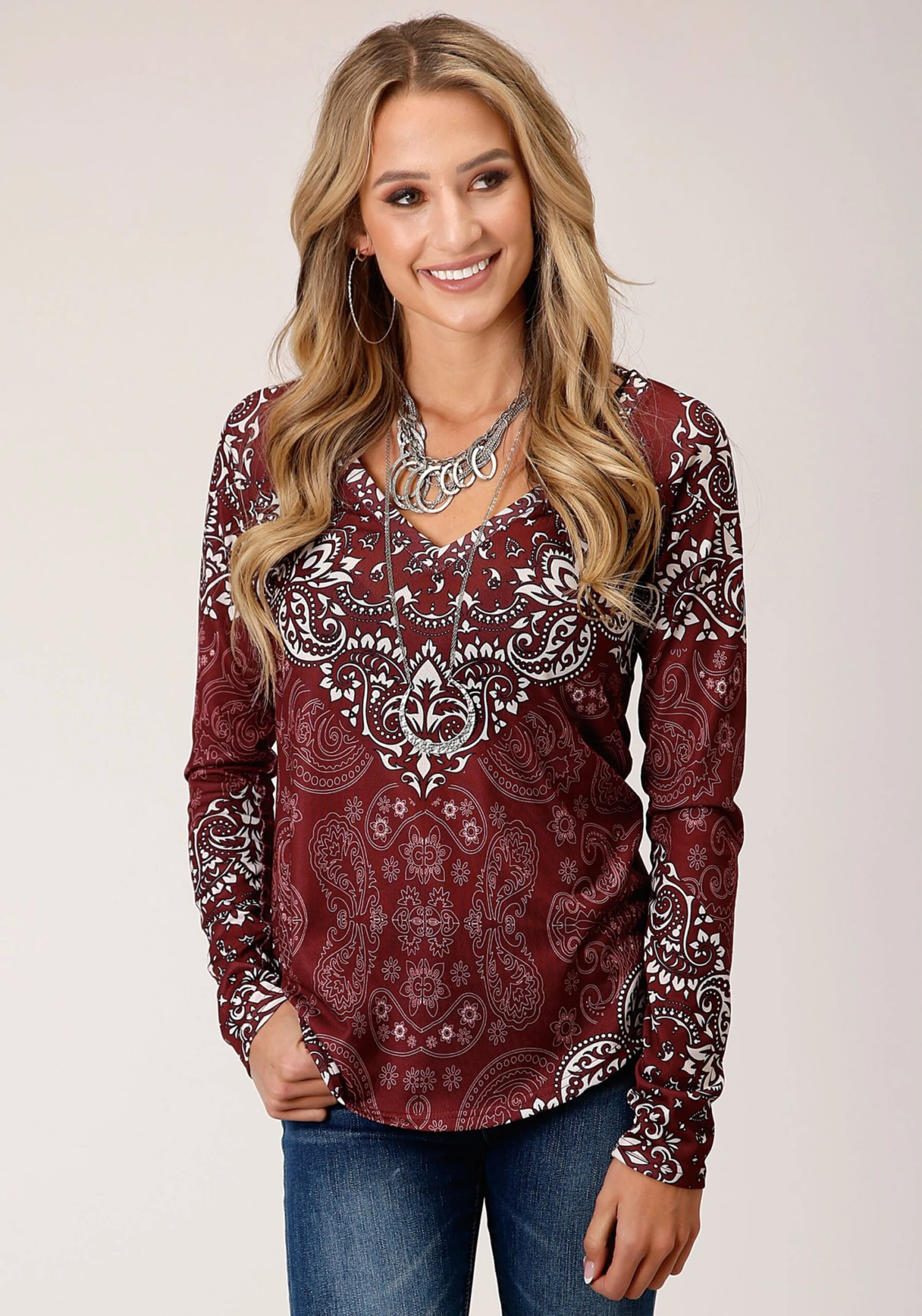 SKU: D2F5B 7857266524407 Category: Tops Tags: 1427 SWEATER KNIT V-NECK TOP, 96% RAYON / 4% SPANDEX, APPAREL, Color: WHITE, Knit, Long Sleeve, NOVELTY/APPLIQUE/EMBROIDERY PRINTED KNIT, Paisley Spice, PRINTED, Pullover, Solid, Studio West, Studio West Collection- Paisley Spice, Tops, WOMENS