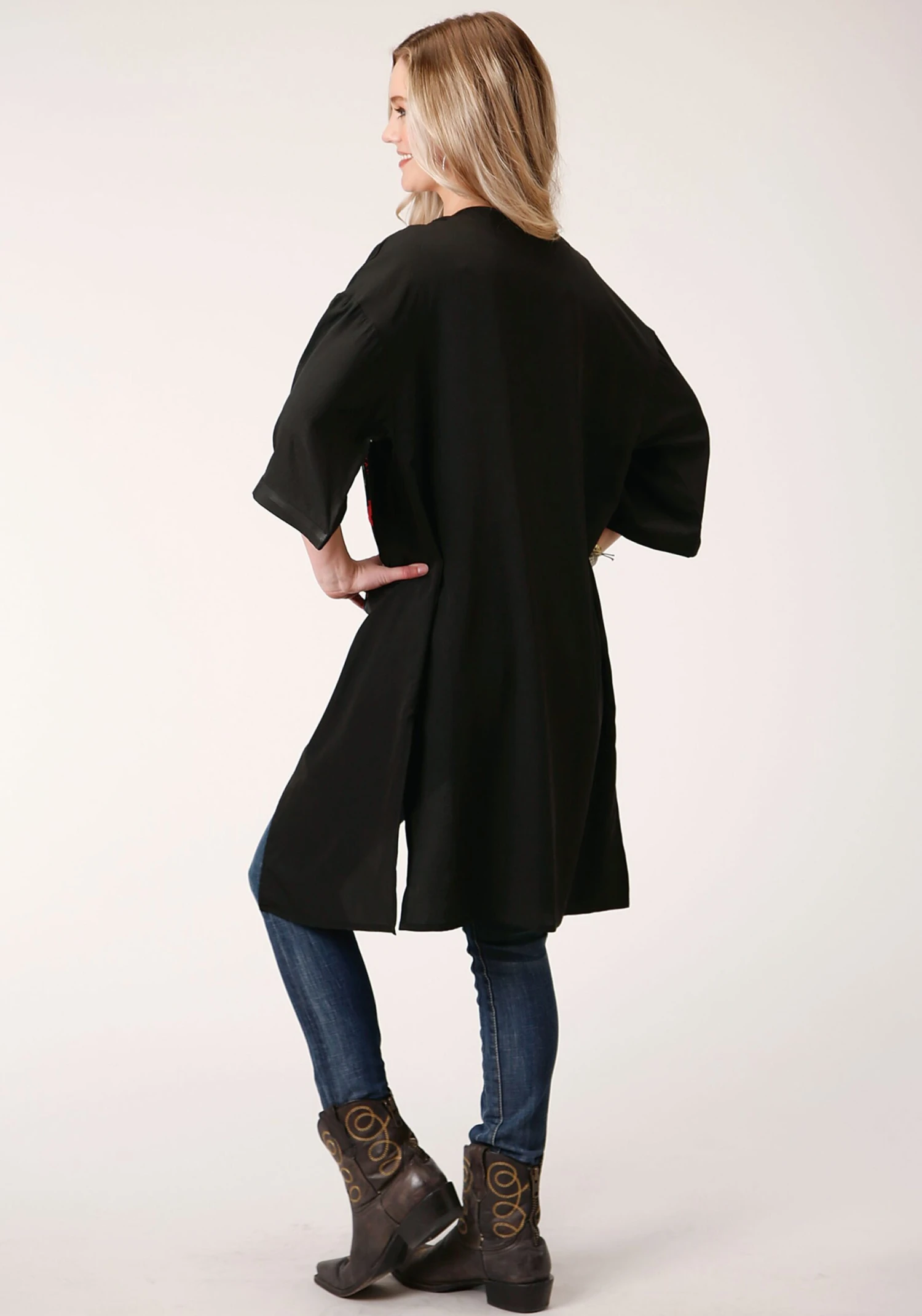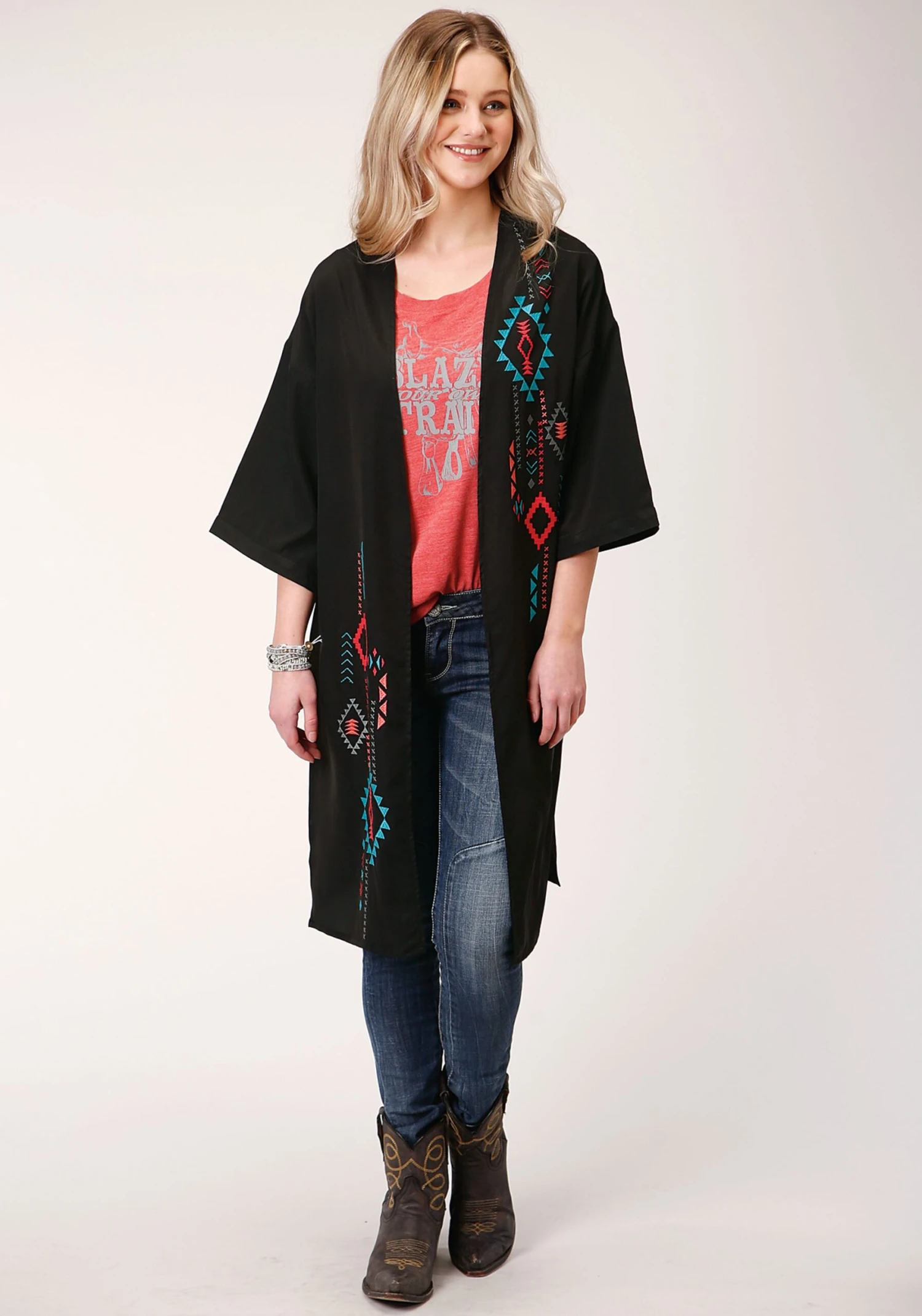 Women’s Kimono Short Sleeve Mid Length Cardigan * Embroidery Decoration On Front