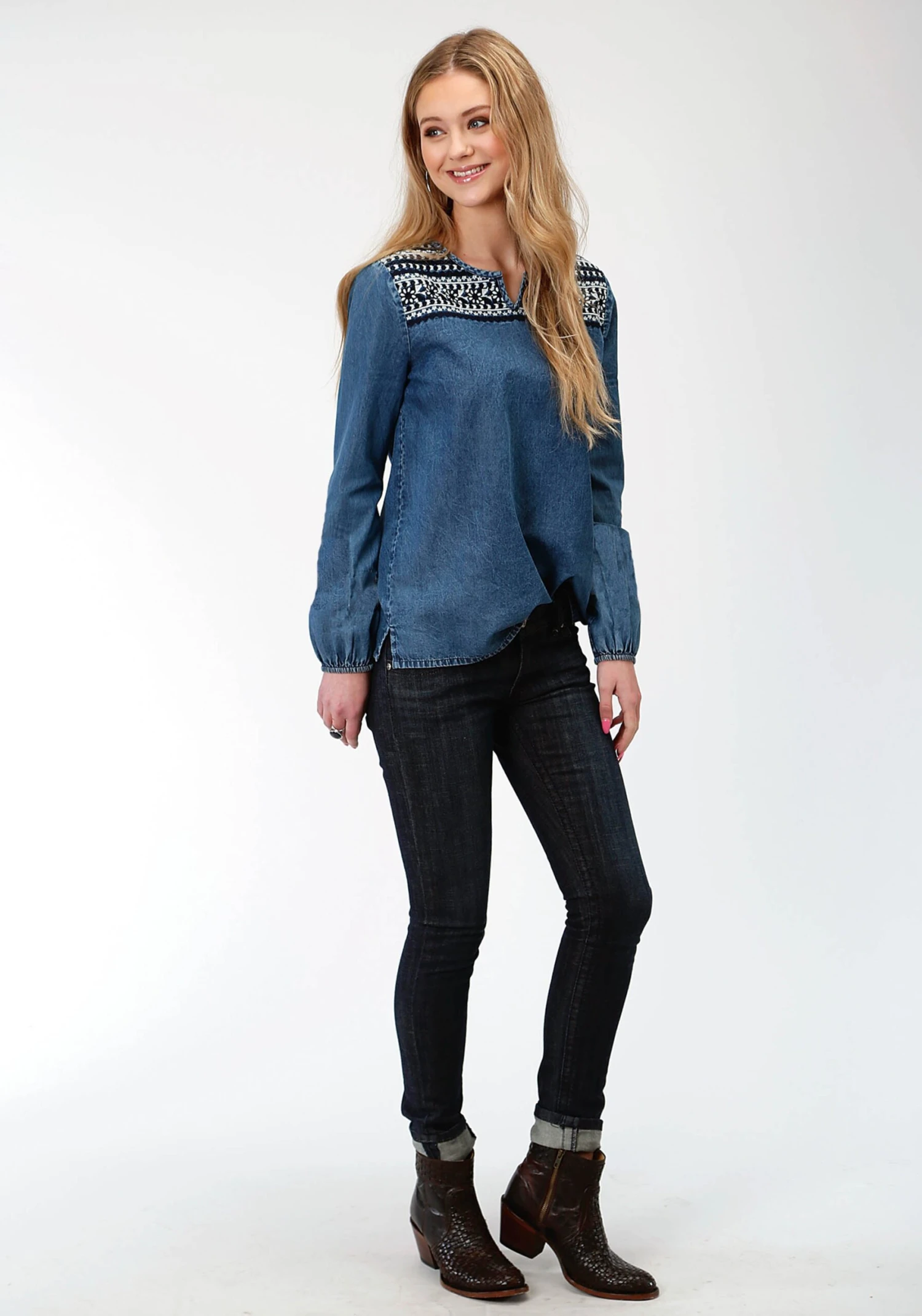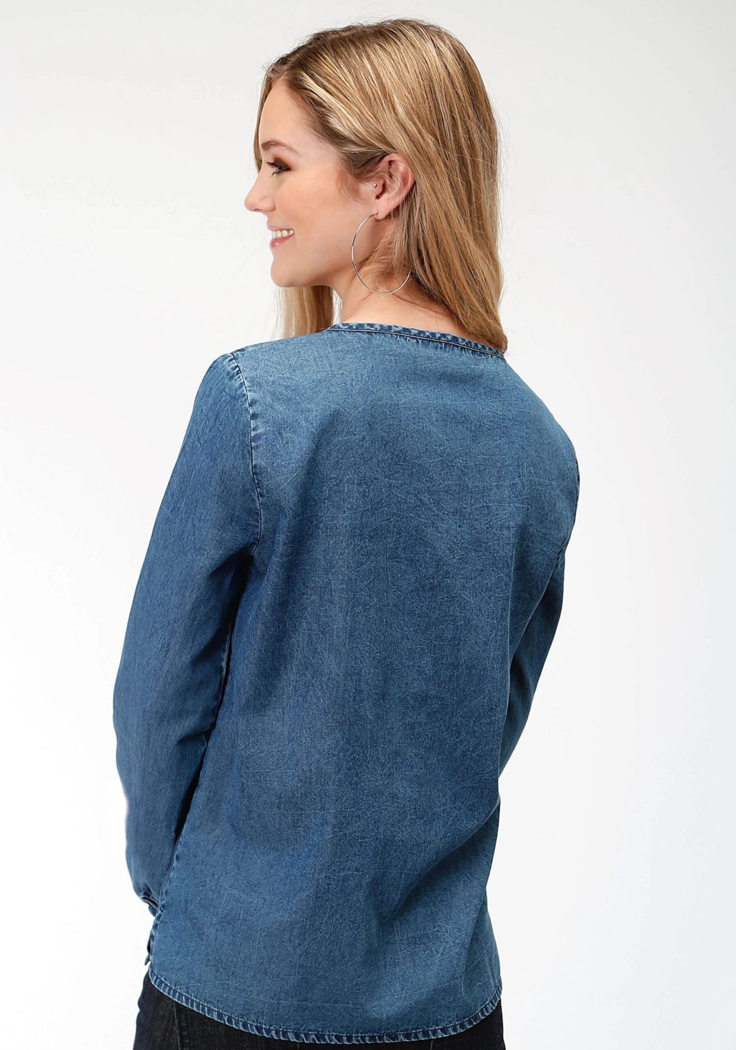 Tencel Denim Blouse * Long Sleeve * Decorated Front Yokes * Garment Washed For Softness