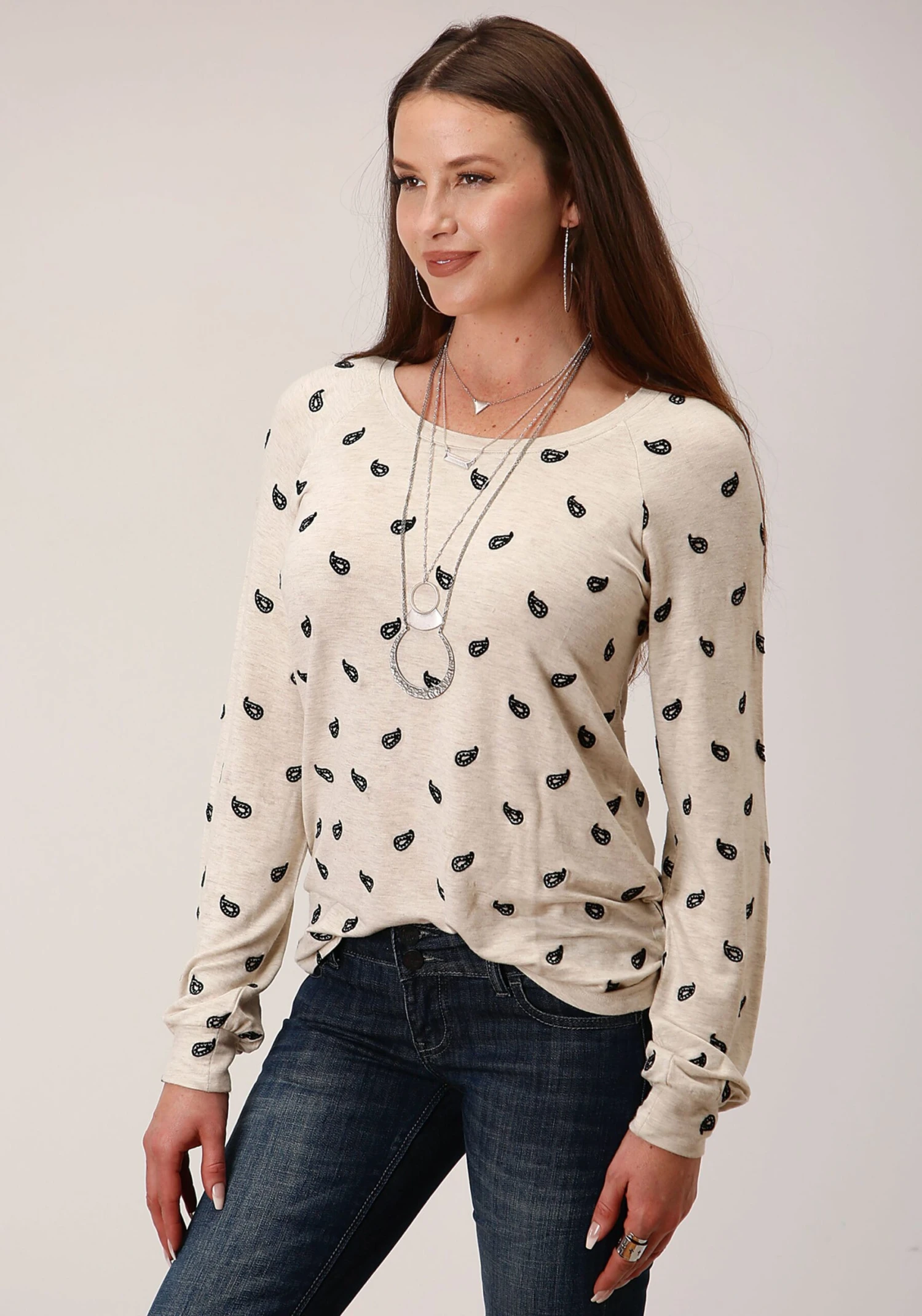 Roper Scoop Neck Paisley Long Sleeve Shirt