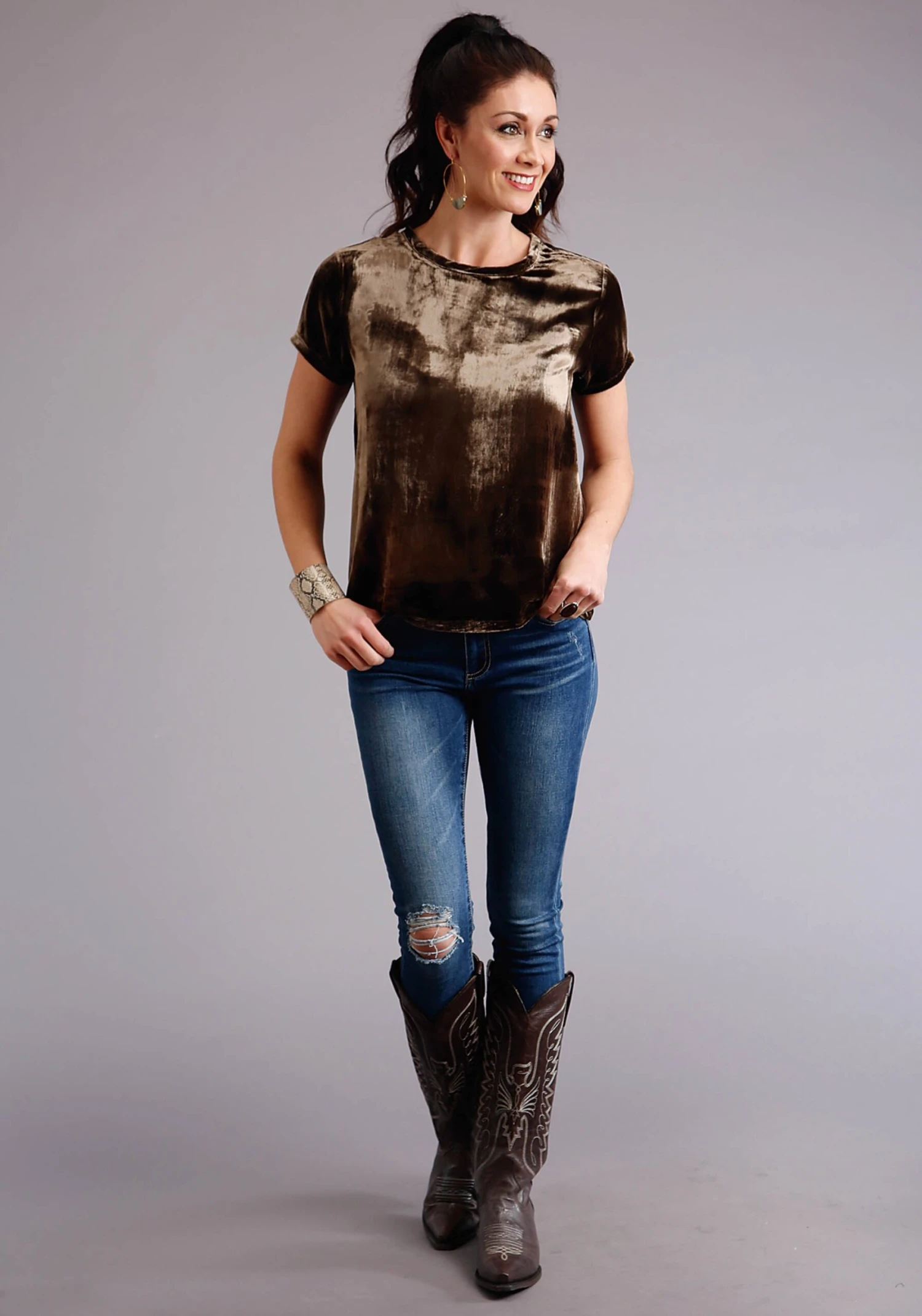 Women’s Bronze Velvet T-Shirt * Self Neckline * Straight Hemline * Short Sleeves